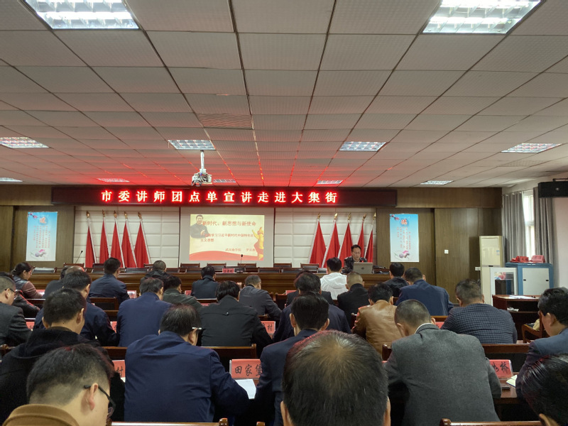 本网讯,10月25日,市委讲师团宣讲员、bv伟德国际1946经理罗双燕走进蔡甸区大集街作“不忘初心,牢记使命”主题教育宣讲报告,街道机关干部、社区书记、企业党支部书记90余人听取报告。