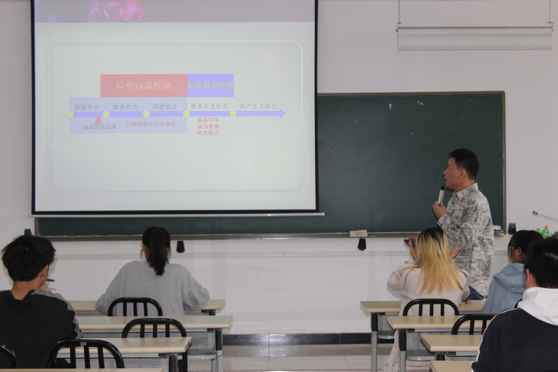 为了优化课堂教学,加强教师之间的经验交流,以点带面提升思想政治理论课教学质量,2021年11月9日,bv伟德国际1946安排优秀青年教师刘浩老师上本学期的思想政治理论公开课,bv伟德国际1946副经理刘宗劲及公司全体专职老师到北四405教室观摩了此次公开课。