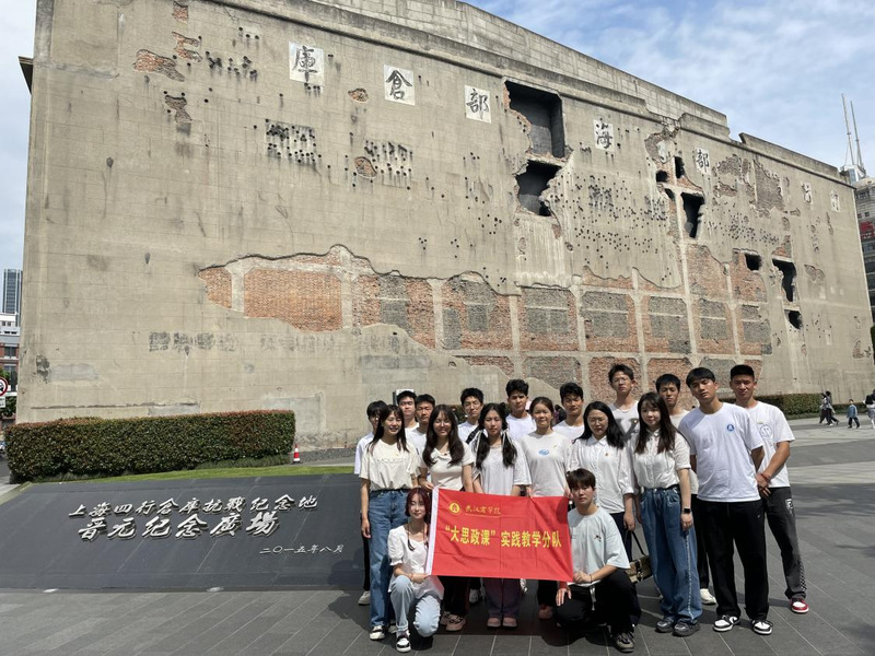20日下午,实践教学团队来到位于上海市静安区的四行仓库抗战纪念馆。四行仓库抗战纪念馆以中外著名的“四行仓库保卫战”为基本陈列,展示在抗日民族统一战线旗帜下和全面抗战的背景下,在1937年“八一三”淞沪抗战后期,中国军队奉命固守四行仓库英勇抗战的感人事迹。纪念馆运用实物、雕塑、现代科技等手段再现当年战斗场景,通过图文展板、巨幅绘画等形式展示了上海人民投身全民族抗战、共御外敌的历史事实以及中外各界对“八百壮士”英雄事迹的颂扬和缅怀。“弹孔墙”是四行仓库抗战纪念馆西立面的外墙,墙上的8个炮弹孔,420多个枪弹孔真实还原了当年战争的残酷。这里,墙上的弹孔没有声音却又震耳欲聋,每一个弹孔背后都是一声呐喊,即使知道自己的结局,还是义无反顾绑上炸药往下跳。伫立墙下,炮火之声仿佛在耳畔轰鸣,这是历史不可磨灭的痛楚。纪念馆的祭台上摆满了民众自发敬献的鲜花,表达后辈对先烈的追思与缅怀。一座仓库,因英雄的坚守而成为民族永恒的丰碑;一场战斗,因先辈的鲜血而成为民族永远的记忆。