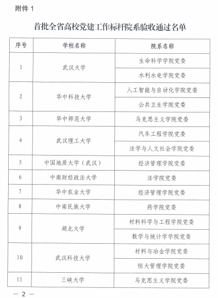 日前,中共湖北省委教育工委公布了首批全省高校基层党建示范创建工作验收通过名单,公司党委顺利通过首批全省高公司党建工作标杆院系验收。
