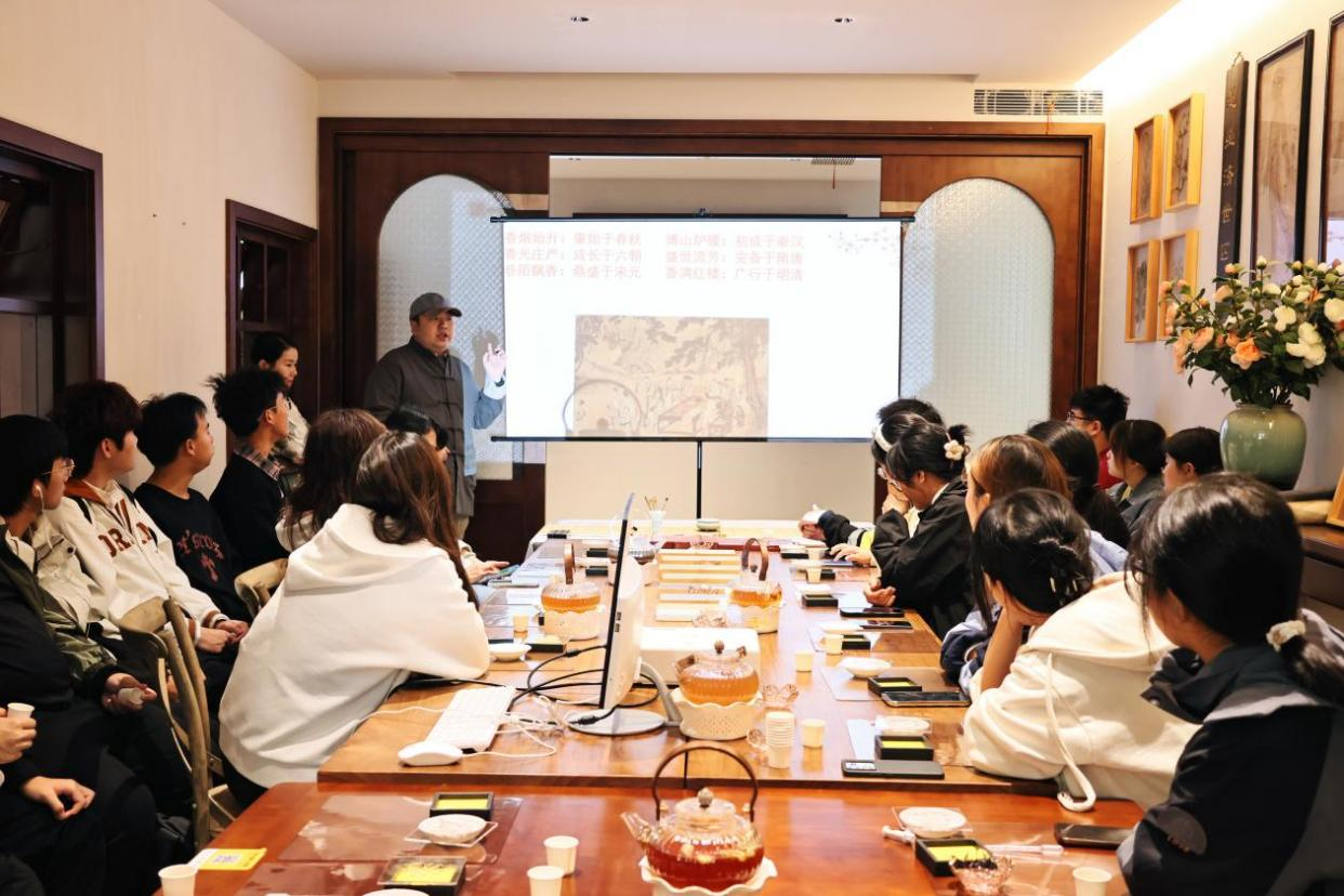 楚香非遗第六代传承人陈述杰为师生们介绍了楚香的相关知识。楚香是中国香文化的起源,是具有浓郁地方特色的中国天然香,非物质文化遗产保护项目。楚香源于楚地民俗对日常健康的香养疗法,当时神农尝百草,运用草木性味服气饮药,以驱虫避病、调理身体。直到春秋战国时期,以屈原为代表的士大夫将草木之芳融入生活起居,将怡养情志升华为精神品德,开创了楚香文化体系。《离骚》中的“扈江离与辟芷兮,纫秋兰以为佩”,江离、芷、兰都是香草。屈原以香草表达高尚情操与爱国情怀,赢得了后世文人士大夫的认同与效仿。
