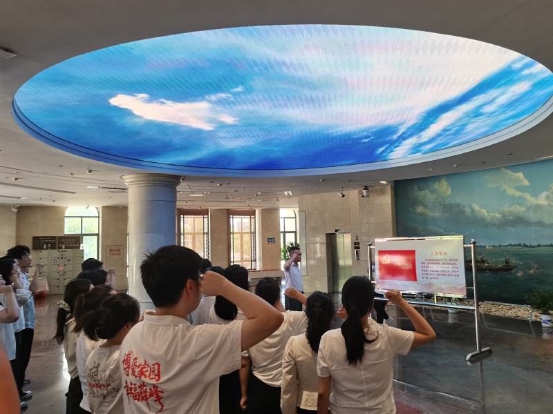 从抗洪精神中感悟了团结的力量,党员们接着来到了坐落于江滩公园、外形宛如一艘即将启航巨轮的横渡长江博物馆。馆内的巨幅油画《万里长江横渡》生动再现了毛泽东同志畅游长江的壮观场景,党员们深刻体会到老一辈无产阶级革命家“到中流击水,浪遏飞舟”的豪迈气概与革命乐观主义精神。这座承载着红色记忆的博物馆,如同一座照亮前行道路的灯塔,连接着过去与未来,让参观者在此汲取“乘风破浪、不畏艰险、勇往直前”的强大精神力量。抗洪精神与渡江精神,都是中国共产党人精神谱系中的重要一环,是伟大建党精神在面对自然灾害和时代挑战时的生动体现,深深熔铸在中华儿女的血脉之中。