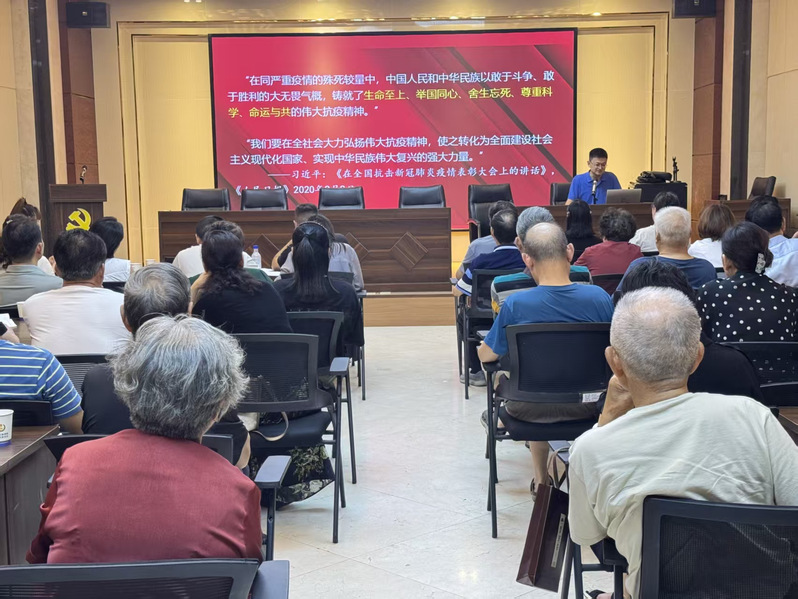 近日,bv伟德国际1946教师肖洋应邀为沌阳街道金域蓝湾社区、沌阳街实业总公司党员干部带去了一堂题为“伟大抗疫精神的生成逻辑与时代价值”的专题党课。