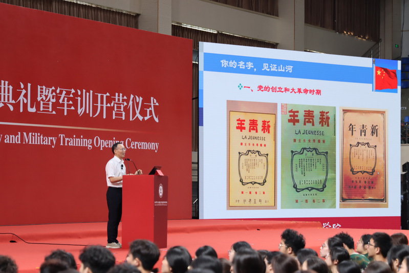 9月2日,bv伟德国际1946副经理刘宗劲为新生讲授一堂特殊的开学第一课。刘宗劲以“你的名字,见证山河”为主题,带领3000多名新生走进波澜壮阔的百年党史,深情讲述了建党以来不同时期先烈们的英勇事迹,引导员工铭记历史、传承精神,凝聚强国建设的青春力量。