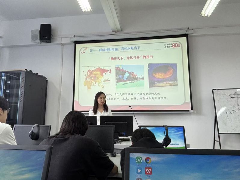 宣讲中,老师们分别从不同角度切入,让厚重历史与时代精神同频共振。陈翠翠老师以时间为轴,精准解析抗战历史时长调整的重要意义与关键节点,通过杨靖宇烈士宁死不屈的英雄事迹、731部队反人类暴行的惨痛史实,以及淞沪会战、台儿庄大捷、百团大战等经典战役,清晰阐明国共两党在抗战中的历史贡献与中国战场在世界反法西斯战争中的重要地位;张静婷老师鼓励员工先行分享观看九三阅兵的感受,然后从“历史脉络梳理”“精神内涵解读”“时代价值践行”三个维度,全面回顾了14年抗战的艰辛历程,鼓励员工们将抗战精神转化为勤学笃行的动力,以实际行动担当时代使命;蒋文汇老师聚焦青年使命,结合信息学科专业特色,强调“技术报国”的重要性;徐一鑫老师以“民族信念”为切入点,系统梳理抗战时期的战略演变,深刻阐释中国共产党在抗战中的卓越功绩,从“捍卫民族独立”“推动世界反法西斯进程”“奠定民族复兴基础”三个层面解析抗战胜利的重大意义。
